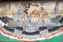 Từ bên trong hành văn không nhìn ra Bồ Tát biến hóa như thế nào. Chỉ biết là, sau khi Bồ Tát mượn đồng tử và bảo vật, liền có hết thảy mọi thứ trong động Liên Hoa cùng ba hòn núi lớn đè chặn Tôn Ngộ Không – núi Tu Di, Nga Mi và Thái Sơn.