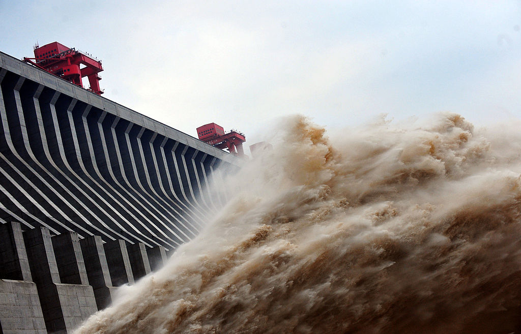 Bức ảnh này được chụp vào ngày 24/7/2012 cho thấy nước được xả ra từ đập Tam Hiệp, một dự án thủy điện khổng lồ trên sông Dương Tử, ở thành phố Nghi Xương, tỉnh…