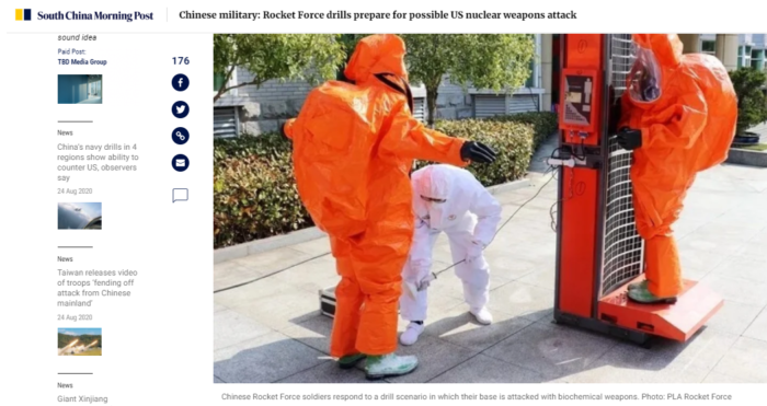 Theo SCMP ngày 25/8, Lực lượng tên lửa (hay còn gọi là Hỏa tiễn quân) của Trung Quốc đã tăng cường các cuộc tập trận ở để đối phó chiến tranh hóa học, sinh học,…