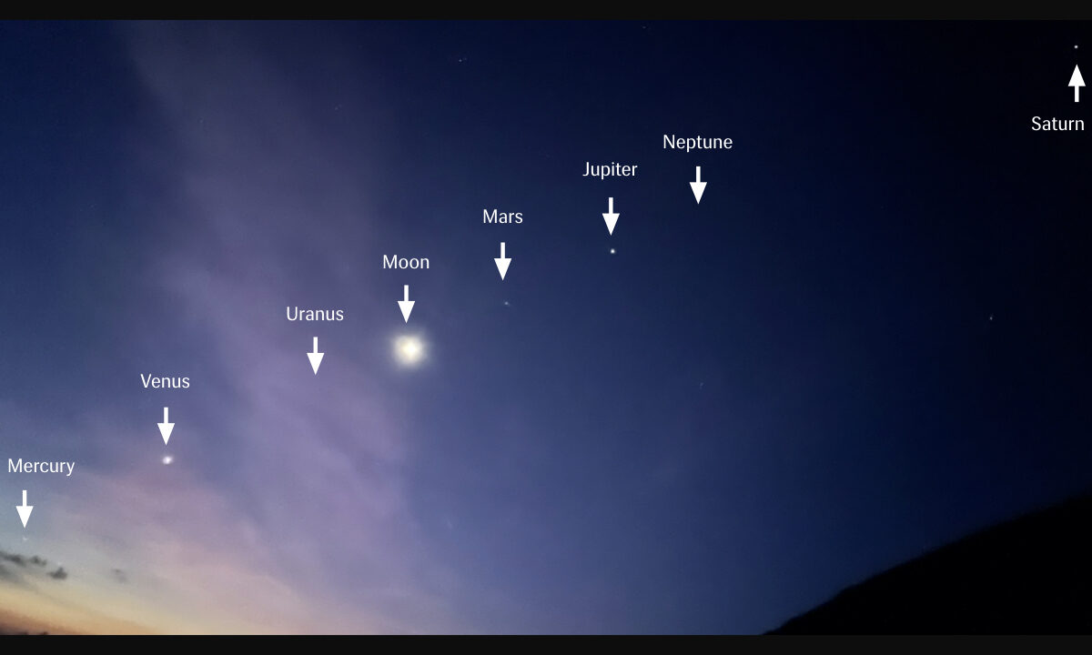 Hôm 24/06/2022, 8 thiên thể (gồm Mặt Trăng và bảy hành tinh) đã xếp thẳng hàng trên bầu trời Hồng Kông.